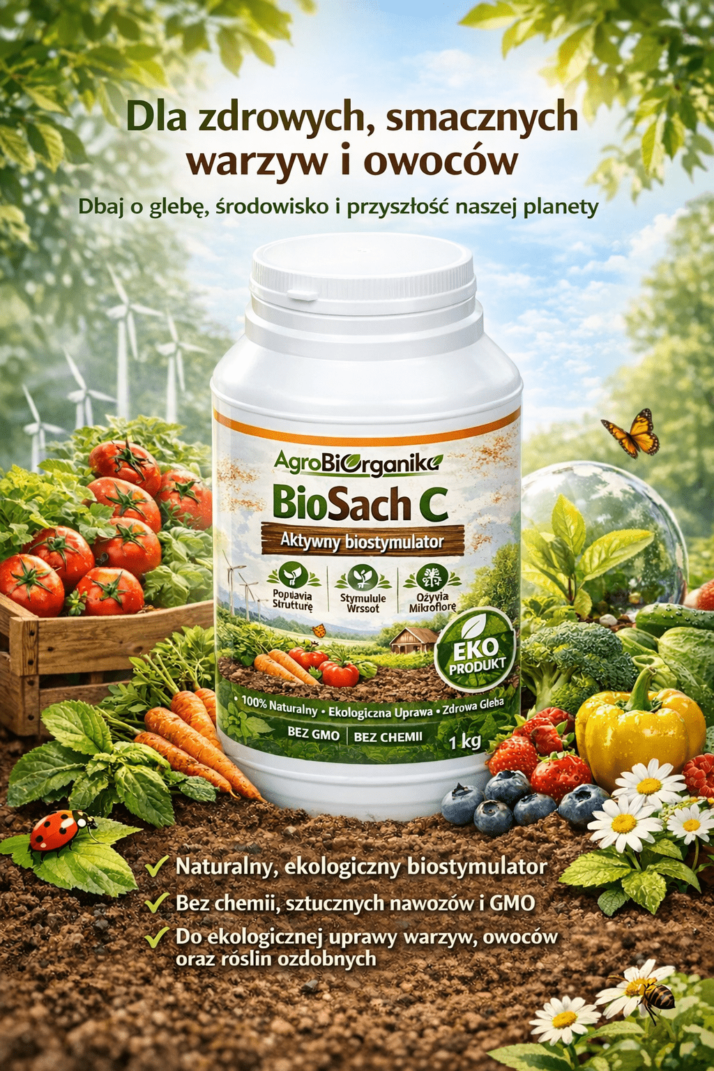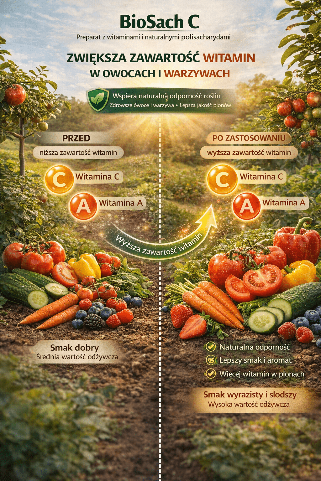 BIOSACH C może w sposób pośredni, ale bardzo wyraźny wpływać na poprawę jakości owoców i warzyw, głównie poprzez oddziaływanie na glebę oraz kondycję roślin.