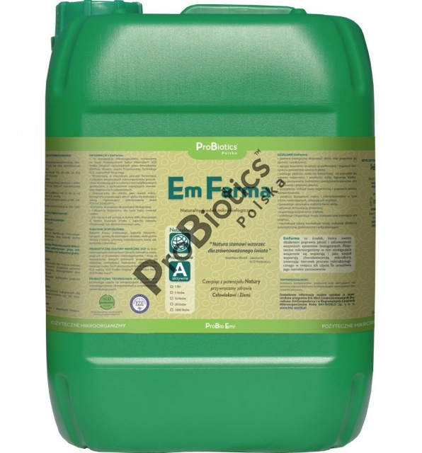 - EmFarma zawiera żywe mikroorganizmy, których nie można mieszać z chemicznymi środkami ochrony roślin, nawozami sztucznymi, detergentami oraz środkami dezynfekcyjnymi,