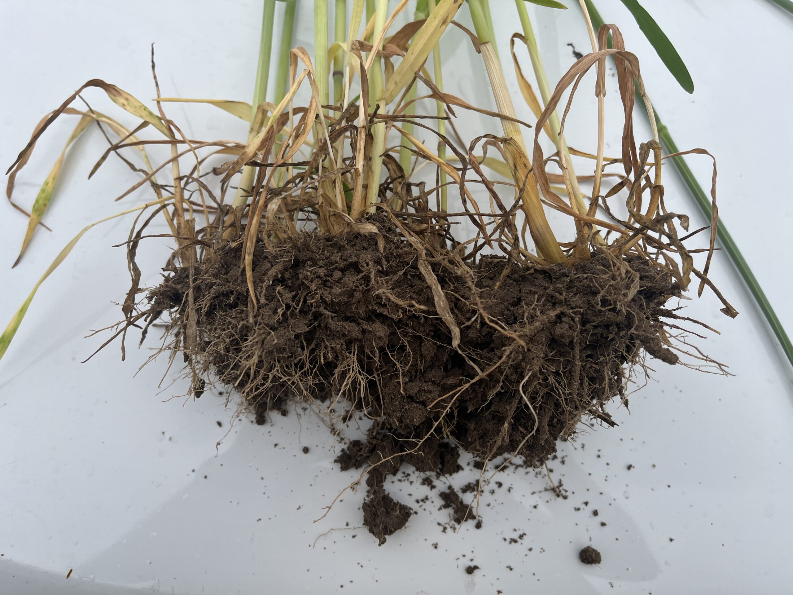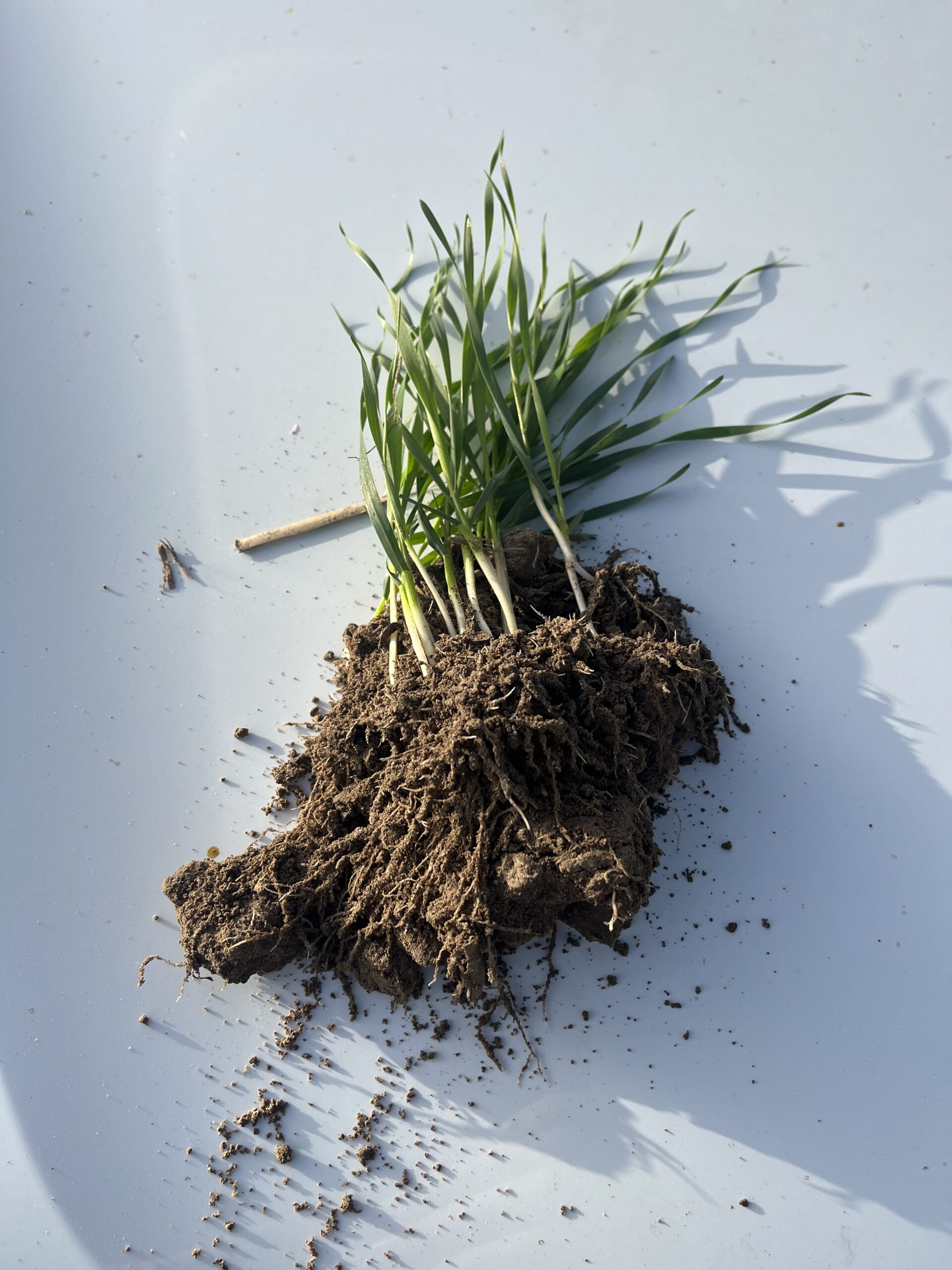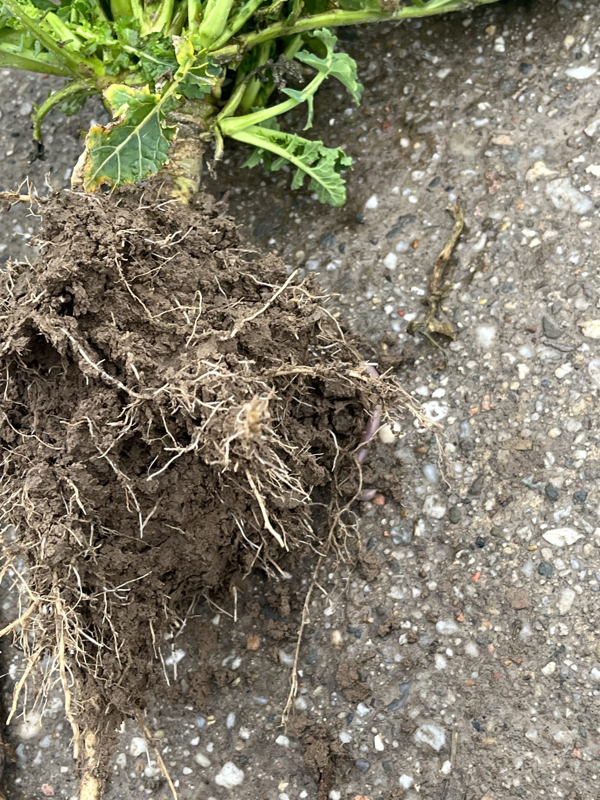 Rzepak ( wiosna 2024) zaprawiany dodatkowo preparatem PROSEED MET na jesieni + chemiczna zaprawa . System korzeniowy bardzo mocno rozwinięty. Roślina bardzo dobrze rozwinięta i zdrowa.