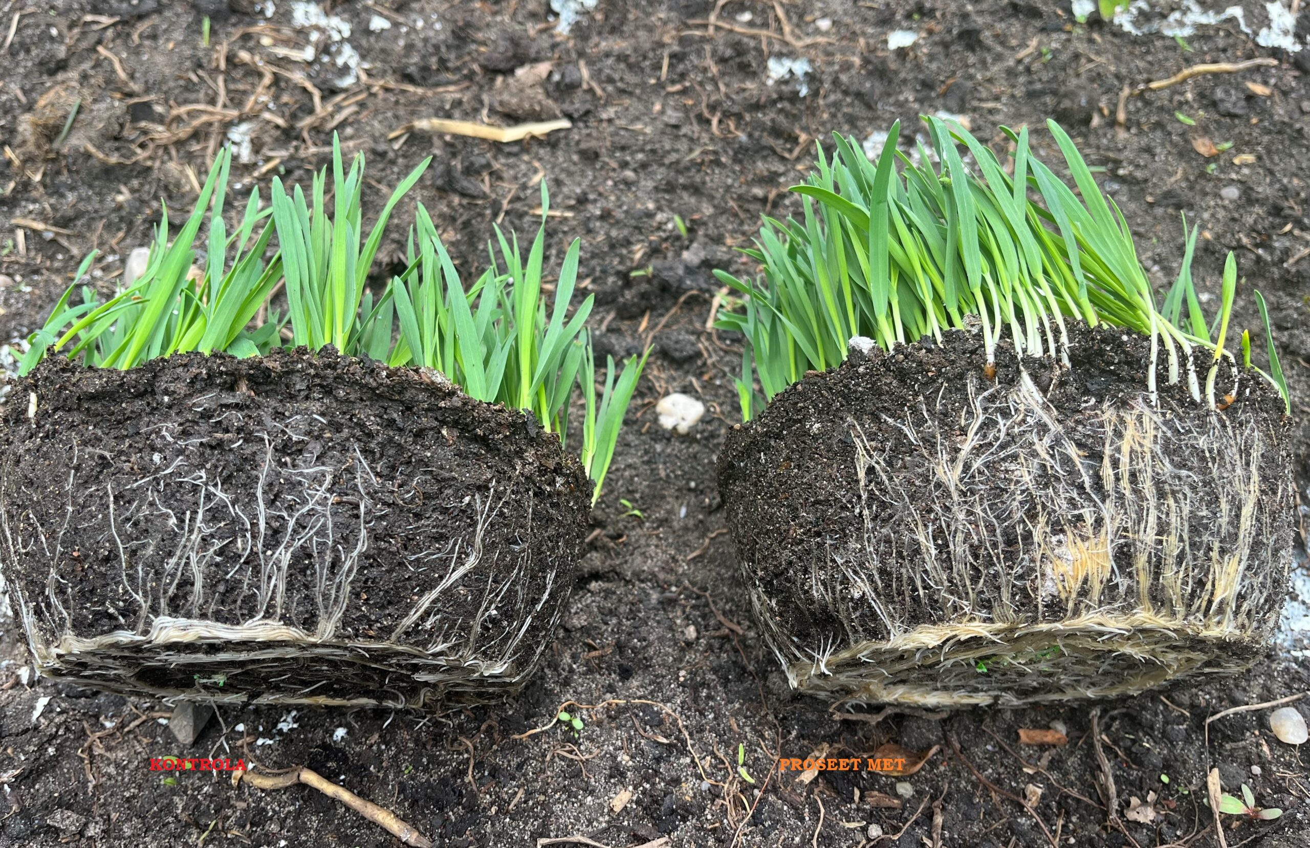 Po prawej stronie zaprawione nasiona owsa, z wytworzonym systemem korzeniowym. Proseed met bardzo łatwo pokrywa nasiona, jest bezpieczny dla środowiska a efekty widać bardzo szybko. Stosowanie zaprawy mikrobiologicznej pozwala na obniżenie nawożenia startowego oraz zwiększa odporność roślin na stres i suszę. Możemy taką zaprawę stosować zamiast zaprawy chemicznej.